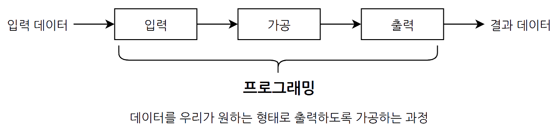 그래서 프로그래밍 작업에서의 코드 구성은 데이터 입력 → 데이터 처리 → 데이터 출력이라는 과정으로 이루어집니다.그림출처: 아이다랩(AiDALab)