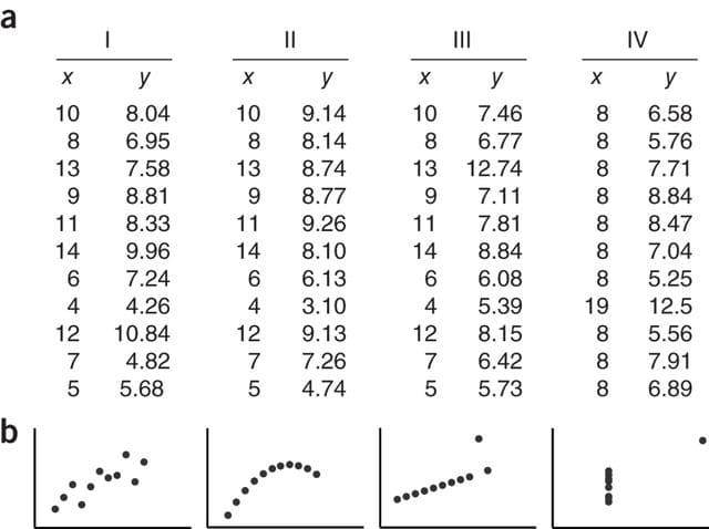 - 통계 방법에 따라 규칙을 보는 것은 어렵지만, 데이터가 시각화되면 규칙은 매우 명확히 인지 가능(예: 안스콤비의 4중주)