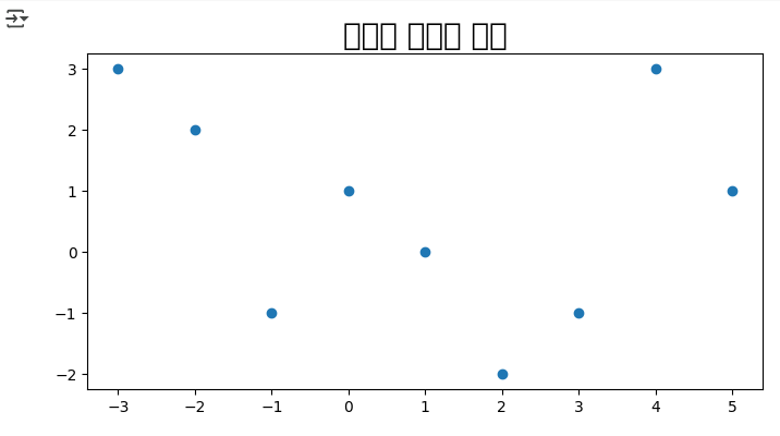 plt.figure(figsize=(8,4)) plt.title('오늘도 즐거운 하루', fontsize=20) plt.scatter(x, y) plt.show()