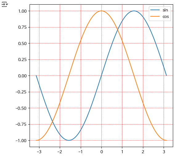 - x의 범위는 0부터 2*pi까지, 0.1 간격으로