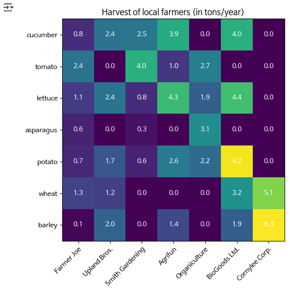 text = ax.text(j, i, harvest[i, j],