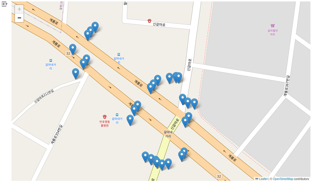 mymap = folium.Map(location=[36.6208541,127.2849716], zoom_start=13) # 위도, 경도, 축척