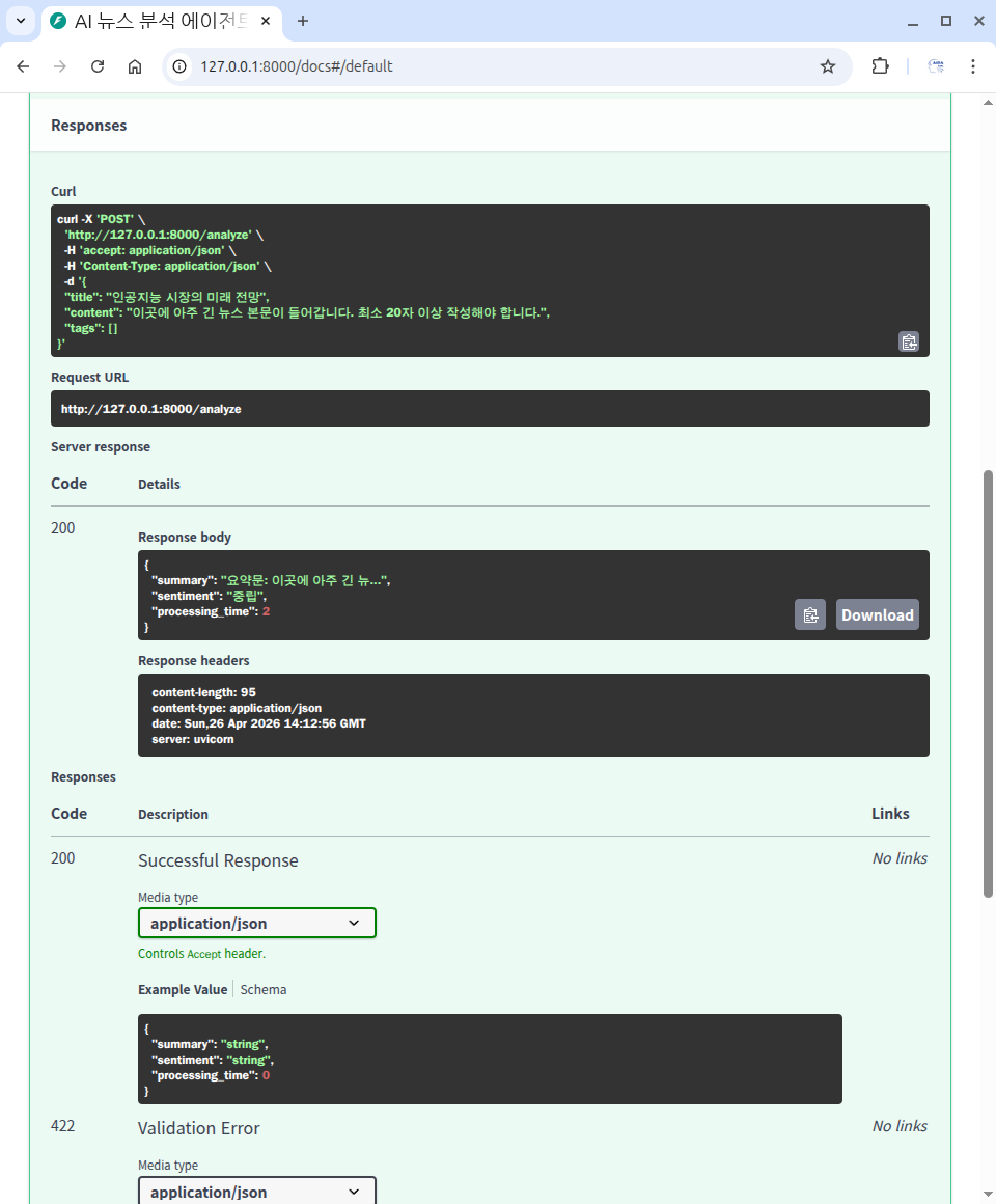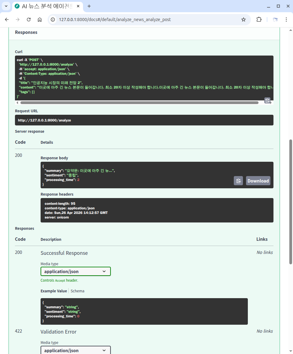 - 긴 뉴스 기사를 받아 비동기적으로 분석