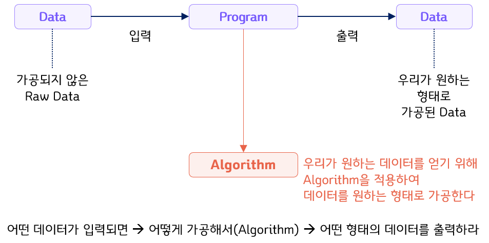 - 데이터를 분석하고 학습하며 추론하는 데 사용되는 수학적 절차와 규칙들의 집합