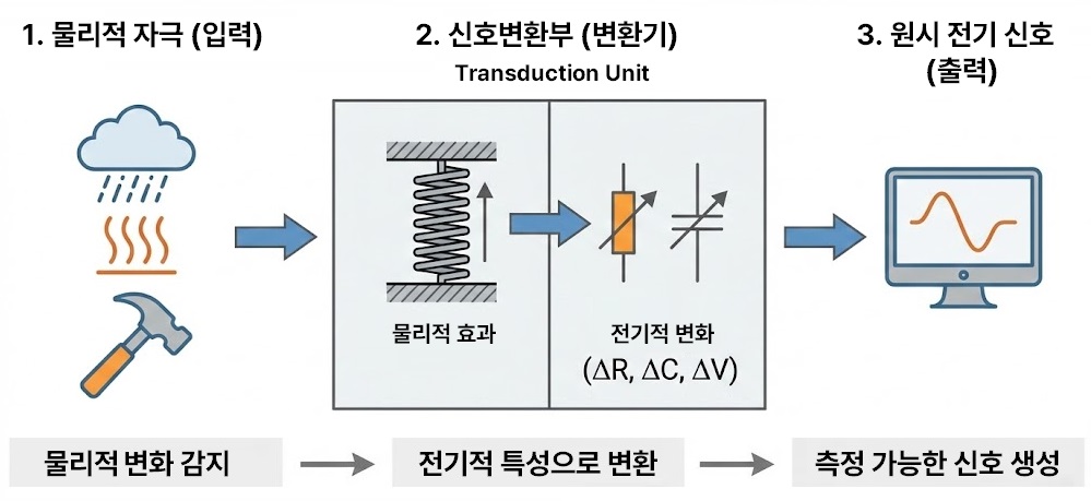 - 감지부가 포착한 비전기적인 ‘현상’을 우리가 측정하고 계산할 수 있는 ‘전기적 신호’로 실질적으로 바꾸는 에너지 변환의 핵심