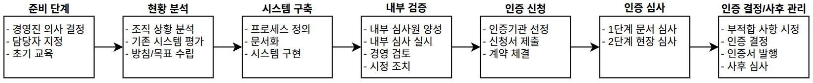 - 준비 단계부터 인증서 발급까지 일반적으로 3~6개월 소요